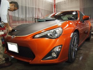 トヨタ86のボンネットにつや消しブラックのラッピングフィルムを施工を致しました。